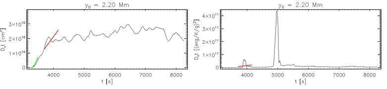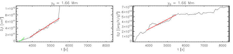 Spread of ensembles of tracer particles at 3 starting heights