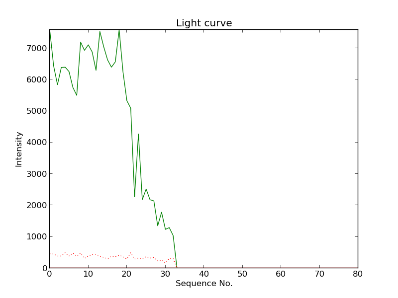 First detection at Az = 1.6 Alt= 13.9 Last detection at Az = 353.7 Alt= 11.8 |