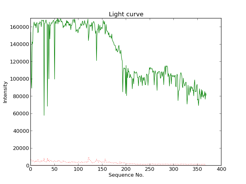 First detection at Az = 344.5 Alt= 20.0 Last detection at Az = 43.5 Alt= 15.4 |