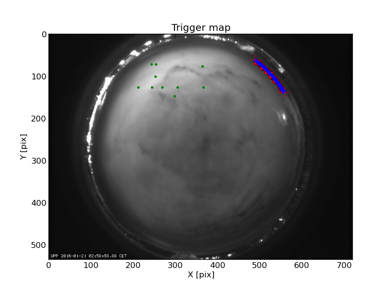 First detection at Az = 310.5 Alt= 6.4 Last detection at Az = 286.0 Alt= 7.5 |