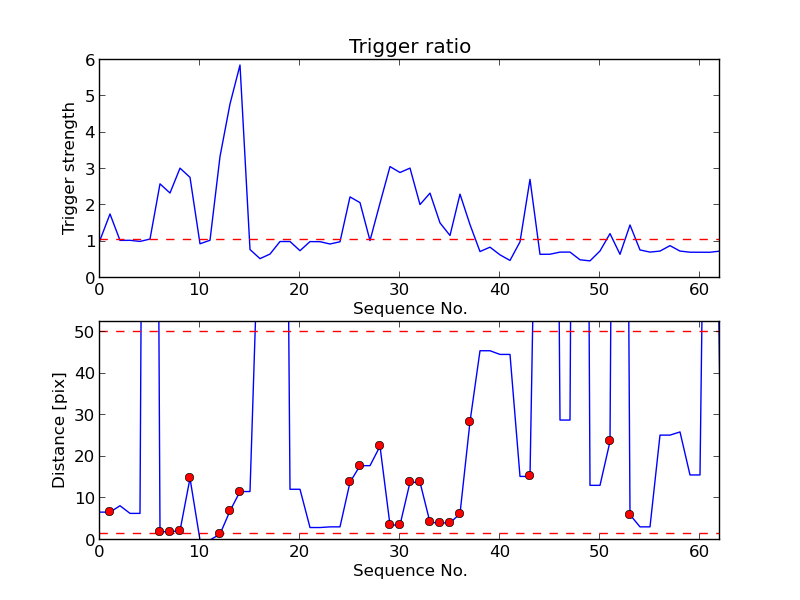 First detection at Az = 193.8 Alt= 9.6 Last detection at Az = 185.1 Alt= 11.3 |
