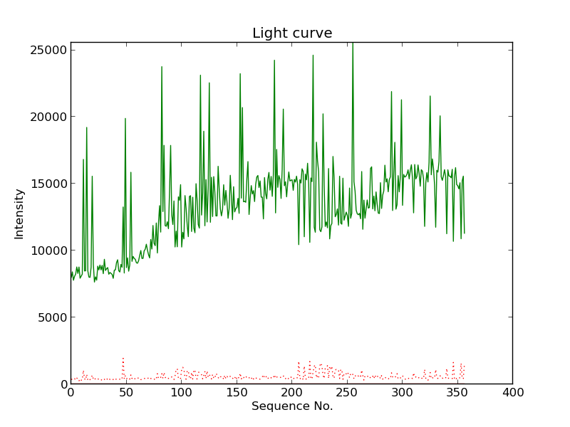 First detection at Az = 343.1 Alt= 60.5 Last detection at Az = 65.6 Alt= 41.1 |