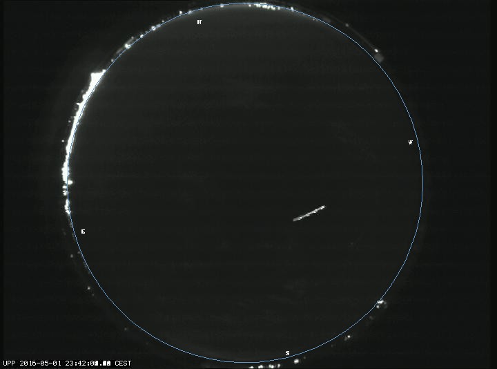 First detection at Az = 237.8 Alt= 50.6 Last detection at Az = 217.1 Alt= 60.9 |