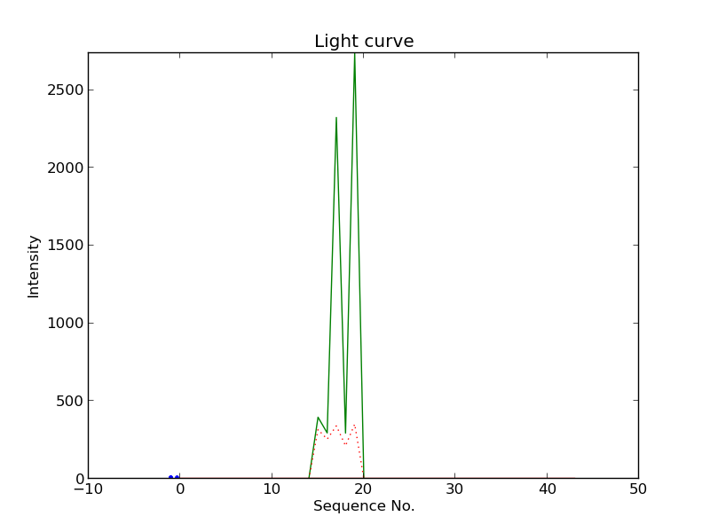 First detection at Az = 184.5 Alt= 14.0 Last detection at Az = 191.6 Alt= 11.7 |