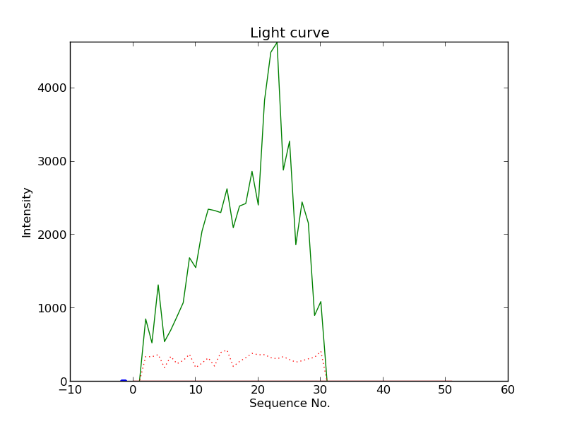 First detection at Az = 319.8 Alt= 29.1 Last detection at Az = 318.8 Alt= 19.4 |
