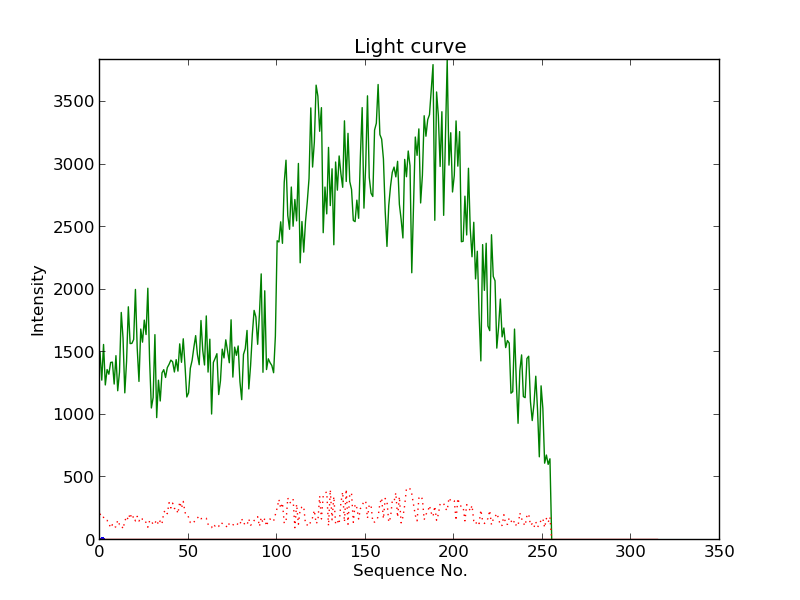 First detection at Az = 50.9 Alt= 22.6 Last detection at Az = 104.2 Alt= 27.6 |