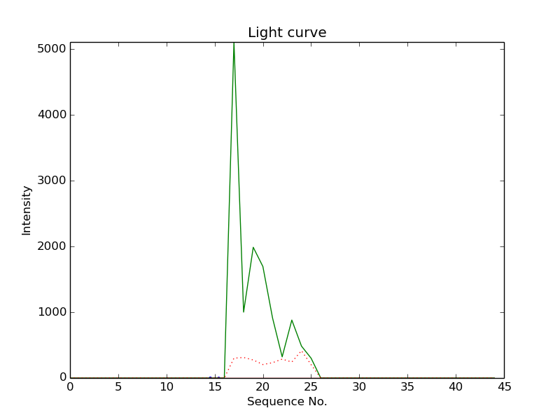 First detection at Az = 94.6 Alt= 3.7 Last detection at Az = 94.9 Alt= 3.9 |