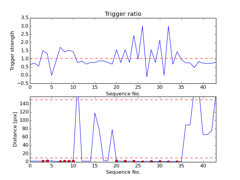 First detection at Az = 289.5 Alt= 65.1 Last detection at Az = 264.7 Alt= 52.6 |