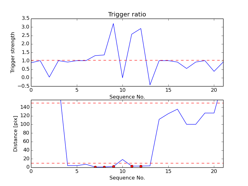 First detection at Az = 331.5 Alt= 9.1 Last detection at Az = 331.0 Alt= 6.6 |