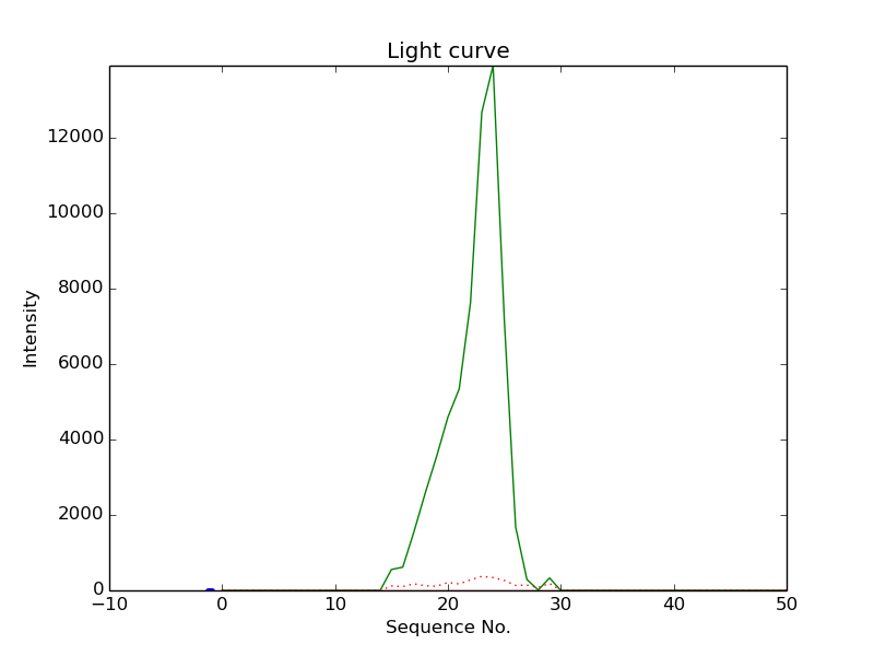 First detection at Az = 210.2 Alt= 28.6 Last detection at Az = 212.2 Alt= 22.2 |