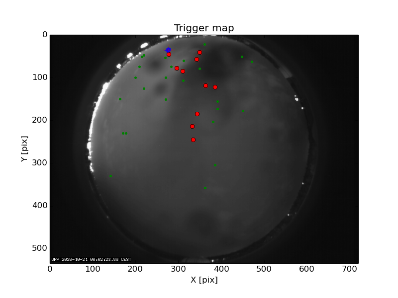 First detection at Az = 327.7 Alt= 42.6 Last detection at Az = 344.0 Alt= 21.2 |