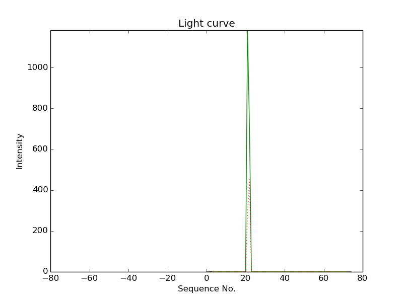 First detection at Az = 108.4 Alt= 24.8 Last detection at Az = 112.1 Alt= 24.0 |