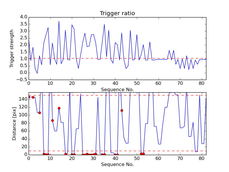 First detection at Az = 306.3 Alt= 7.3 Last detection at Az = 296.7 Alt= 8.0 |
