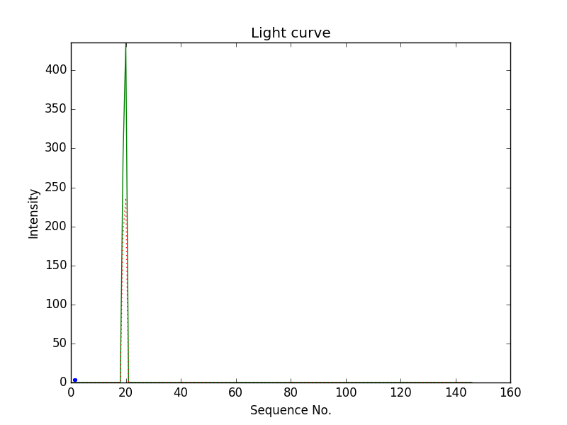 First detection at Az = 158.7 Alt= 15.4 Last detection at Az = 154.9 Alt= 15.3 |