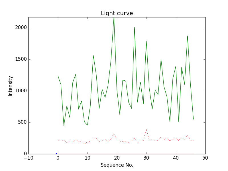 First detection at Az = 238.6 Alt= 56.6 Last detection at Az = 262.8 Alt= 54.4 |