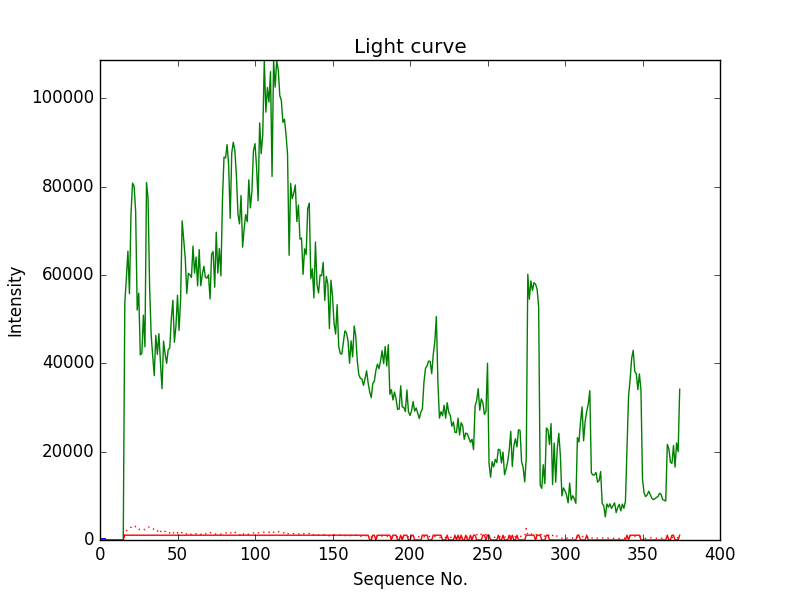 First detection at Az = 29.6 Alt= 17.6 Last detection at Az = 159.7 Alt= 22.7 |