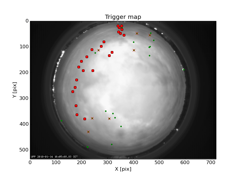 First detection at Az = 110.1 Alt= 29.7 Last detection at Az = 339.6 Alt= 5.7 |