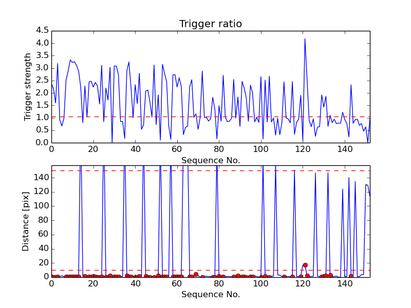 First detection at Az = 172.2 Alt= 43.1 Last detection at Az = 129.5 Alt= 32.4 |